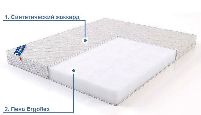 2. Высокоэластичная недеформируемая пена Ergoflex (20 см). С такой основой матрас не проседает в спальном месте и его края держат форму весь срок своей службы. Пена с повышенной плотностью выдерживает нагрузку до 120 кг. Равномерное распределение ячеек по всей площади матраса обеспечивает вам крепкий сон и качественный отдых.