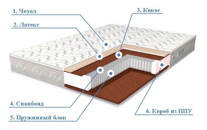 - Латекс (2 см). Натуральный материал, который добывают из сока экзотического дерева. Эластичный, удерживает позвоночник и позволяет ему принять удобное положение. Не деформируется со временем, хорошо принимает начальную форму. Гибкий, упругий, не вызывает аллергию, характеризуется бактерицидными свойствами.