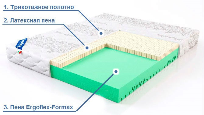 3. ERGOFLEX-Formax (15 см). Семизональный блок из высокоэластичной пены. Слой обладает высокой упругостью и стойкостью к деформации и износу. Пена на водной основе имеет структуру, обеспечивающую идеальный воздухо- и влагообмен в матрасе. Таким образом ваше спальное место всегда будет комфортным, лишняя влага во время сна впитывается в матрас и испаряется из него в дневное время. ERGOFLEX-Formax благодаря 7 зонам жесткости создает ортопедический эффект. Наполнитель прекрасно адаптируется к весу различных частей тела и оказывает необходимую им поддержку, чтобы равномерно распределить нагрузку и снять усталость и напряжение с мышц.